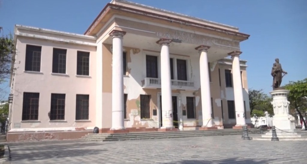 La fachada de la instalación educativa se empieza a caer a pedazos,motivo por lo cual el área está acordonada.