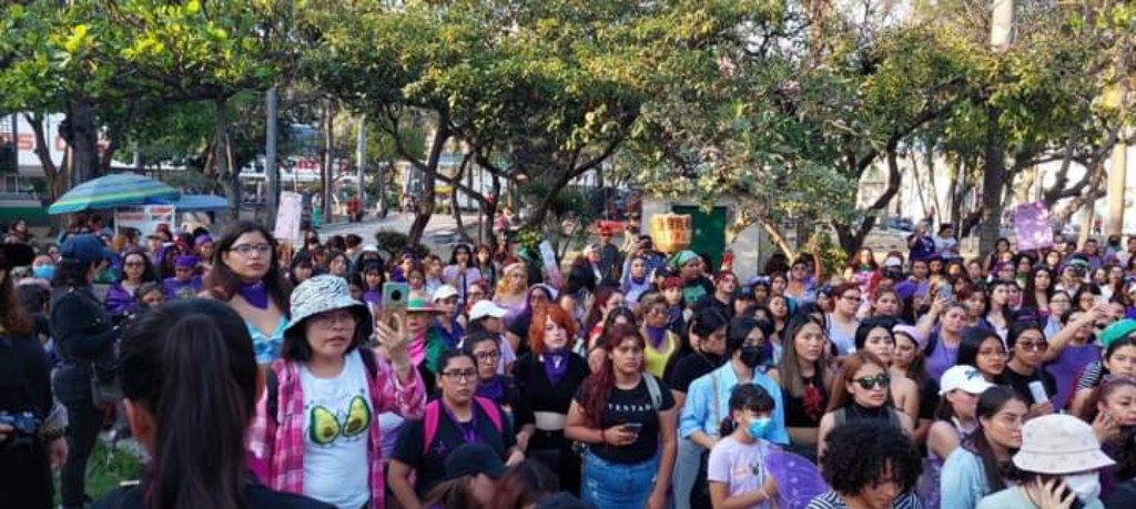 Veracruz, Ver., 8 de marzo 2023.- integrantes de diversas colectivas marcharon por calles del centro de la ciudad de Veracruz para conmemorar el Día Internacional de la Mujer, y en voz de algunas de sus integrantes,