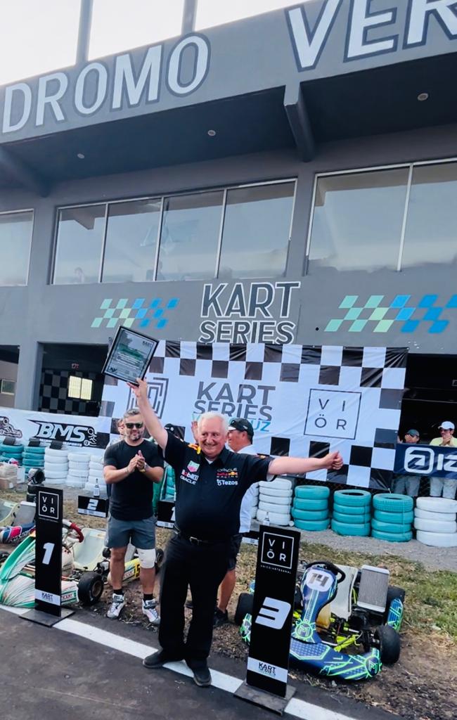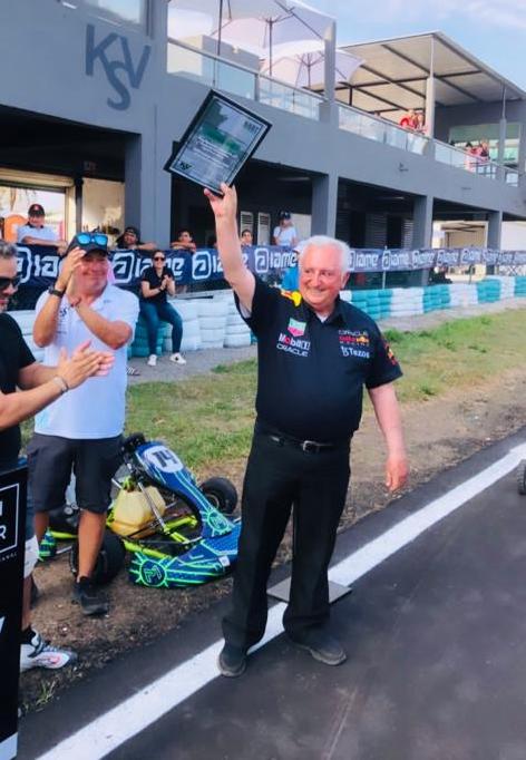 Directivos del Kartodromo, familiares y amigos acompañaron al “Tiburón Volador” en sencilla y emotiva ceremonia en donde le entregaron un reconocimiento por su exitosa trayectoria en el deporte motor nacional.
