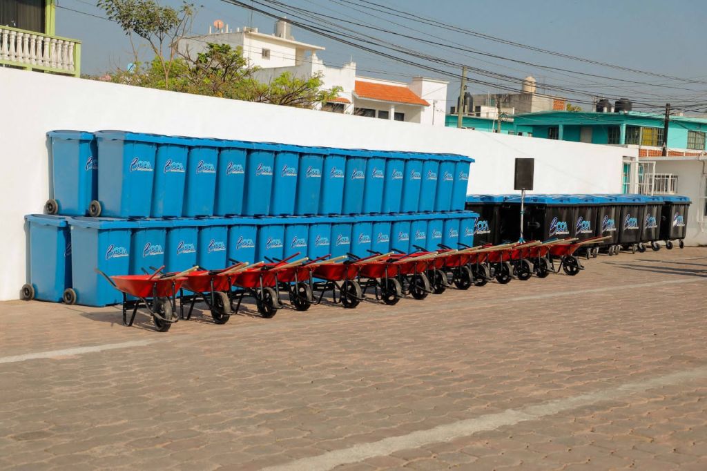 Además de uniformes entregó contenedores, botes de basura con llantas, impermeables, botas de hule, guantes flexibles, palas, escobas metálicas tipo araña y de mijo.