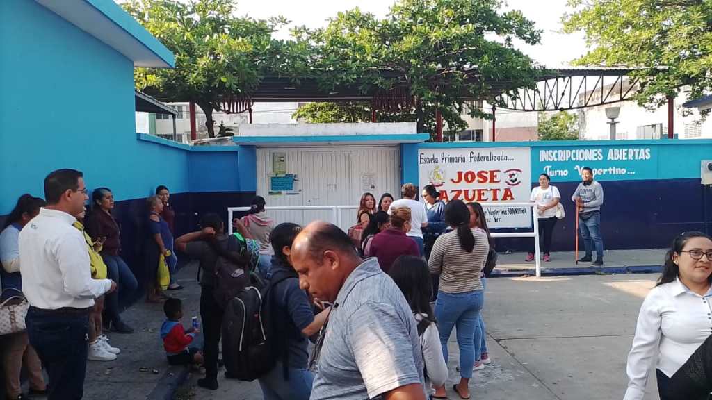 Veracruz, Ver.- Padres de familia de la escuela primaria «Salvador Díaz Mirón» se manifestaron afuera de las instalaciones debido a que tienen 3 años sin director.