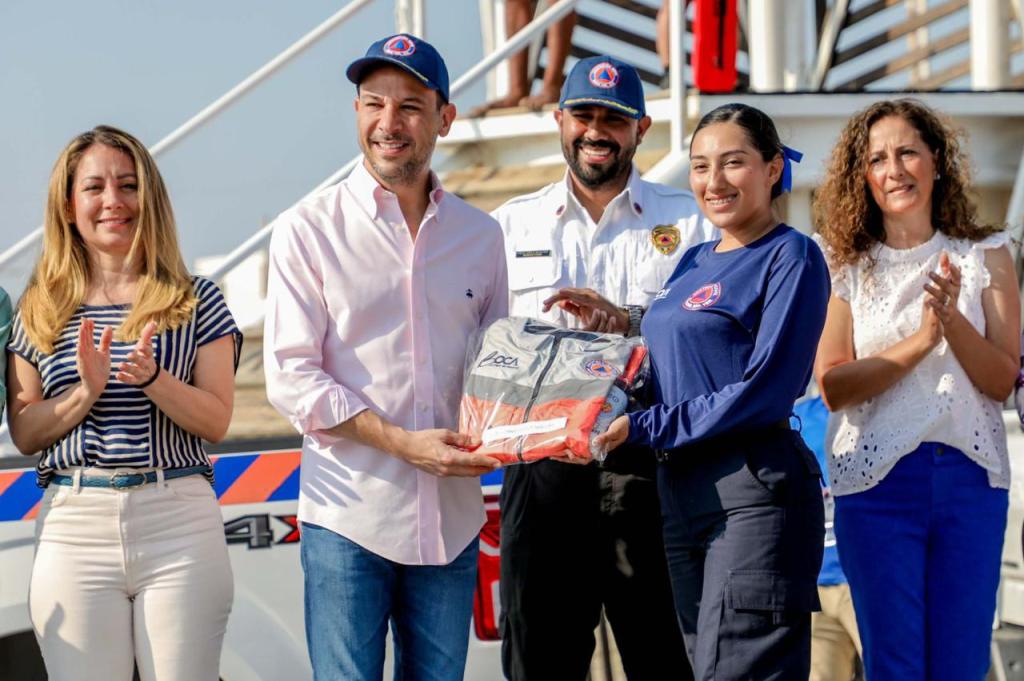 Entre los implementos y equipos que se entregaron son: uniformes, chalecos de seguridad, equipos de radiocomunicación portátiles y base, boyas para delimitar zona de escolleras, binoculares, megáfonos, maya plástica, banderas para señalización de playa, entre otros.
