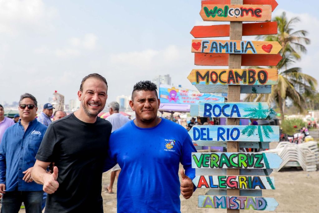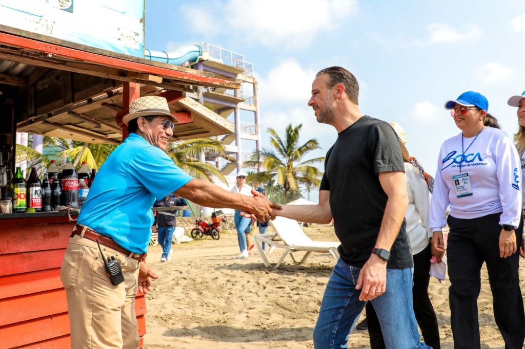 Desde temprana hora el Alcalde de Boca del Río, Juan Manuel Unánue Abascal, realizó un recorrido de inspección en las playas Mocambo y La Bamba, donde además saludó a los visitantes que disfrutan de la costa boqueña.