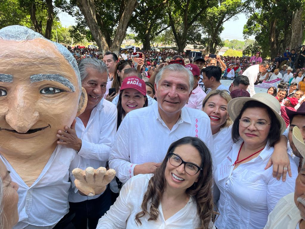 Durante el acto, Adán Augusto reconoció el papel de las jóvenes Regina y Fabiola, ex diputadas y ex alcaldesas, al recodar que alguna vez en 2005 visitó El Mangal para entrevistarse con el padre de ambas, Cirilo Vázquez.