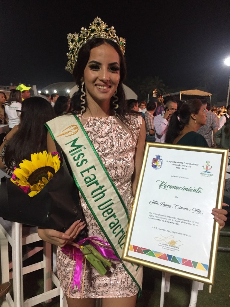 En el marco de la edición 74 del Carnaval de la Feria de la Pesca 2023, el Ayuntamiento de Alvarado reconoció la belleza, profesionalismo, dedicación y compromiso con su tierra natal de Naomy Cámara Ortiz, Miss Earth Veracruz, quien este año representará a nuestro estado en el certamen nacional.