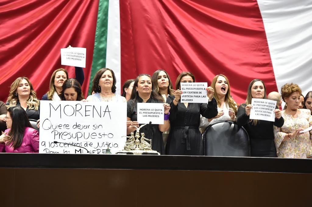 “Al pueblo siempre lo llevan en el discurso, no en el corazón, ni mucho menos en el presupuesto, pero este día, las diputadas de todos los partidos de oposición estamos aquí en Tribuna haciendo frente, dando batalla y exigiéndoles que les digan a las mexicanas qué están haciendo con los recursos destinados a atender la violencia y por qué el día de hoy quieren retirar hasta el último centavo; no lo vamos a permitir”, señaló.