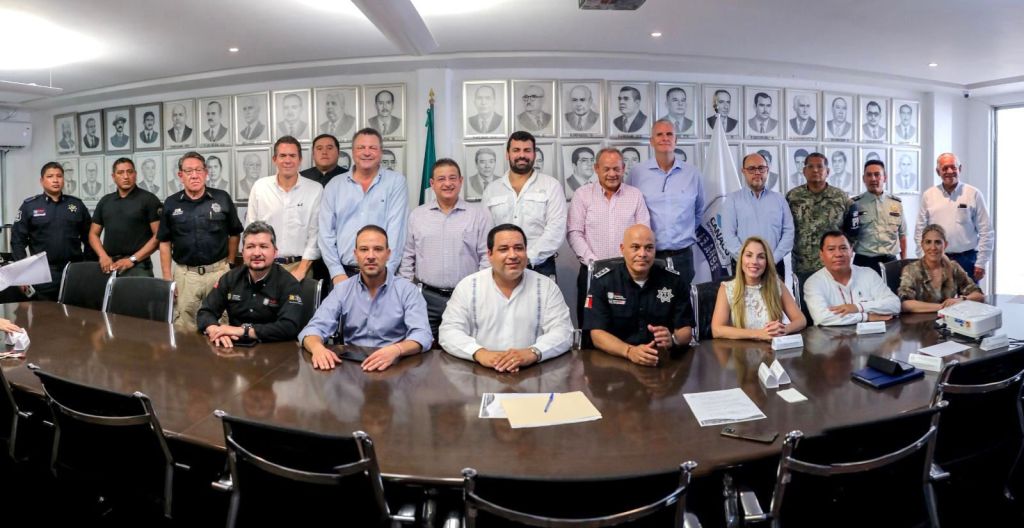 Juan Manuel Unánue Abascal, Alcalde de Boca del Río, participó este miércoles en la Mesa de Seguridad integrada por presidentes de cámaras empresariales, así como por representantes de las diferentes Fuerzas de Seguridad de los tres ámbitos de gobierno.