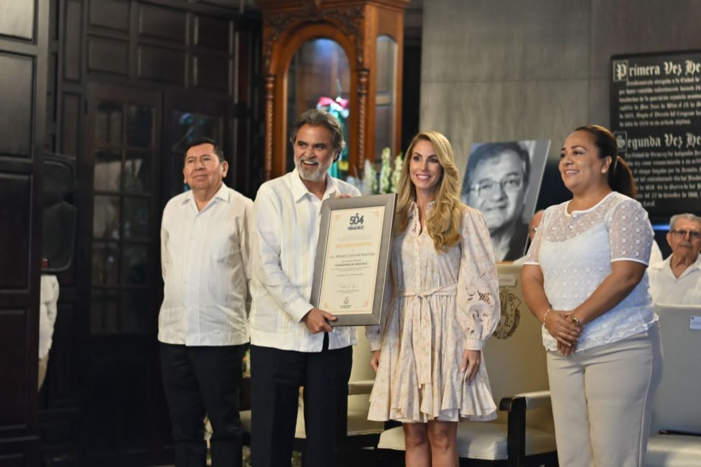 La munícipe Paty Lobeira de Yunes hizo entrega de reconocimientos post mortem a Antonia del Carmen Peregrino Álvarez “Toña La Negra”, al ingeniero Valentín Ruiz Ortiz, al contador Sergio M. Pazos de la Torre, así como al fotógrafo Andrés Rivera Domínguez.