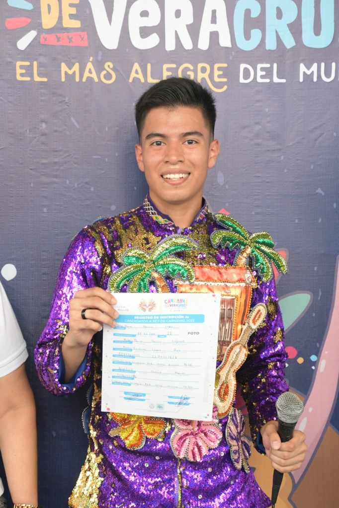 H. Veracruz, Ver. 27 de abril.- La mañana de este jueves el joven Johan Darío García López obtuvo su registro oficial como candidato a Rey del Carnaval de Veracruz 2023 “El más alegre del mundo”, mismo que tendrá lugar del 29 de junio al 5 de julio.