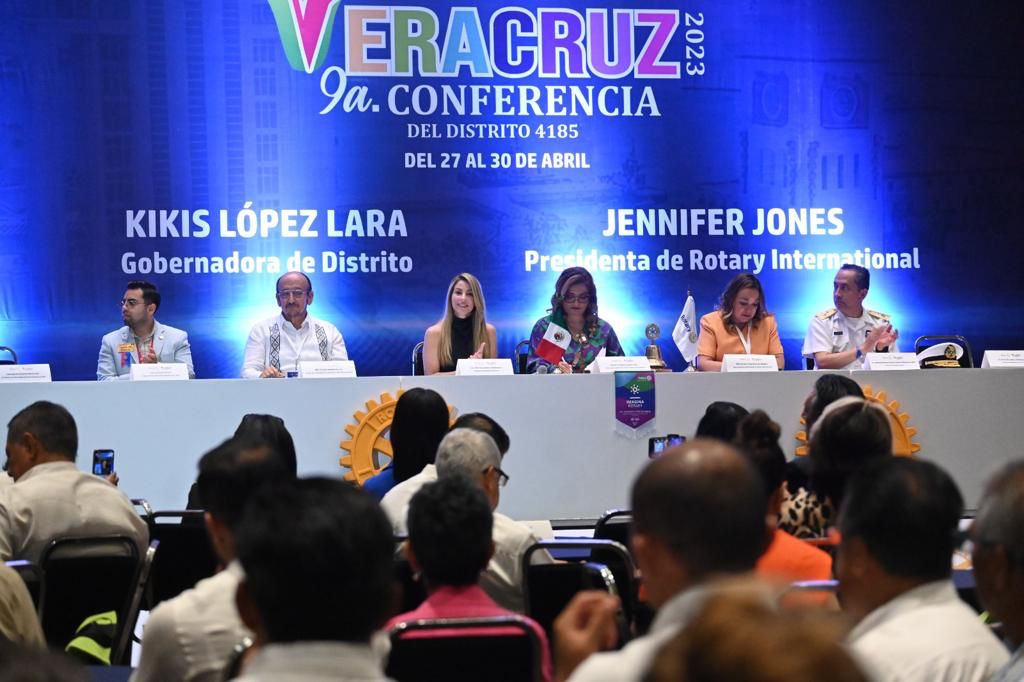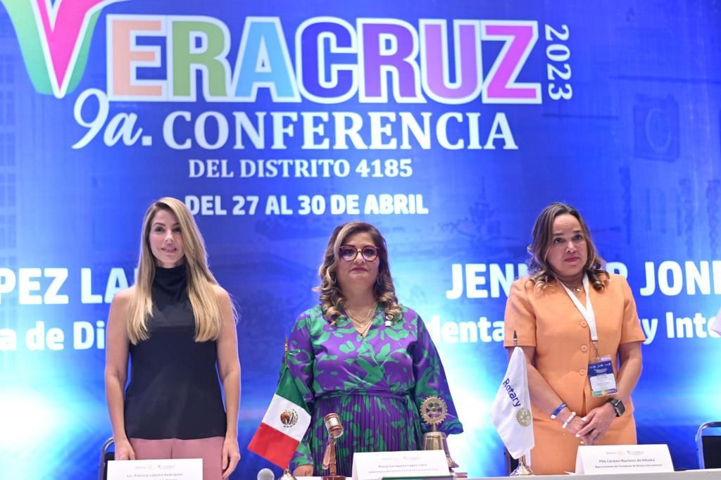 *Veracruz, Ver., 28 de abril de 2023.-* Durante su participación en la inauguración de la 9ª Conferencia del Distrito 4185 del Club Rotario, que comprende 5 estados de la República Mexicana, la alcaldesa Paty Lobeira de Yunes felicitó a todos sus integrantes por las acciones que realizan a través de proyectos y programas sociales que permiten mejorar y fortalecer el entorno social, así como la promoción de valores, el cuidado y protección del medio ambiente, y lo más importante, por crear verdaderos lazos de amistad.