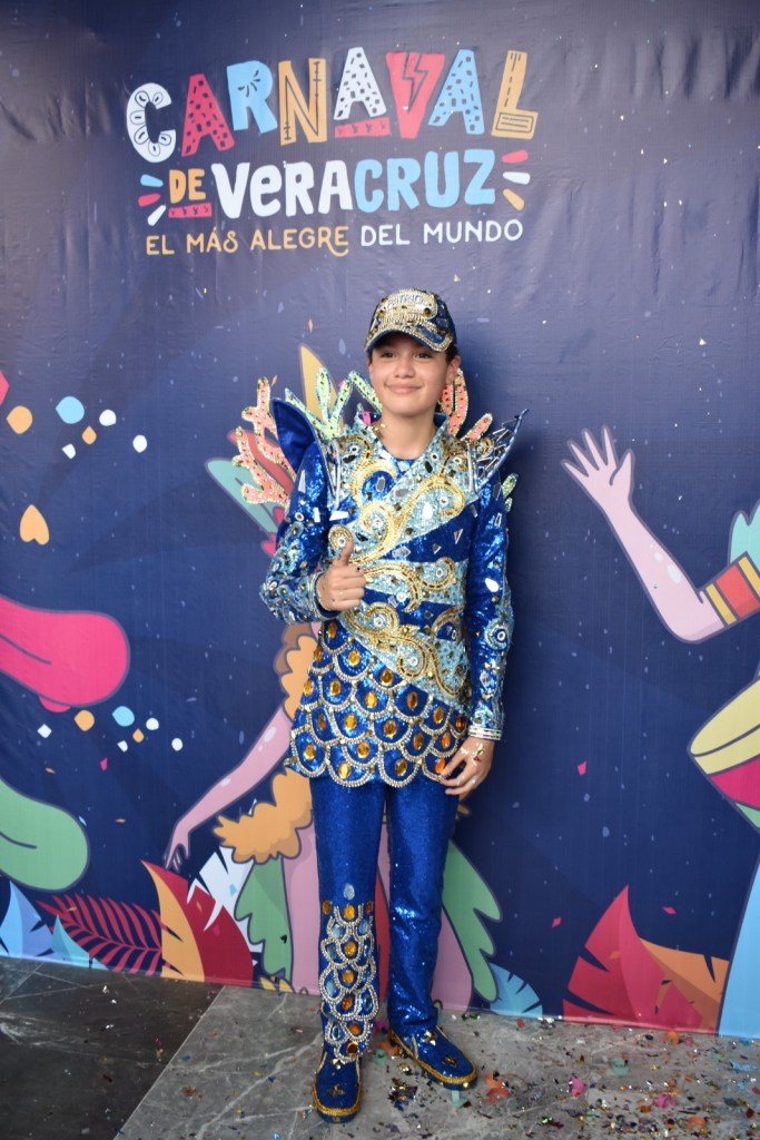 Patricio Samuel Veloz Camacho “Pato Veloz” con distintivo azul se convirtió en el rey infantil electo del Carnaval de Veracruz al ser el único candidato inscrito.