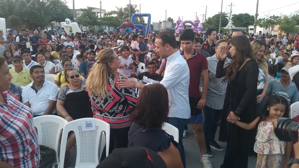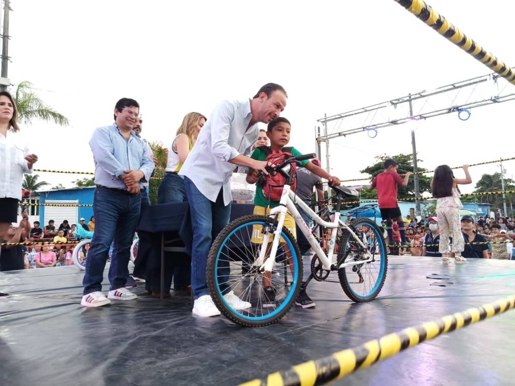 El alcalde de Boca del Río Juan Manuel Unanue junto con la presidenta del DIF boqueño Melina Rivera de Unánue llevaron a cabo la celebración del Día del Niño en el dren B con una función de lucha libre;así como la rifa de bicicletas para los pequeños que estuvieron presentes.