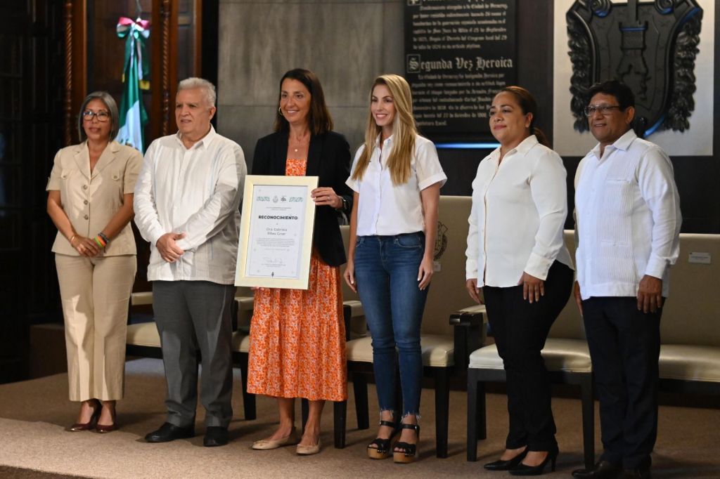 En ceremonia realizada en la Sala de Cabildo, la alcaldesa Paty Lobeira de Yunes hizo entrega de reconocimientos como “visitantes distinguidos” a cinco ponentes internacionales -participantes en el Congreso organizado por la Universidad Veracruzana-, por sus aportaciones en materia de emprendimiento, innovación y creatividad.