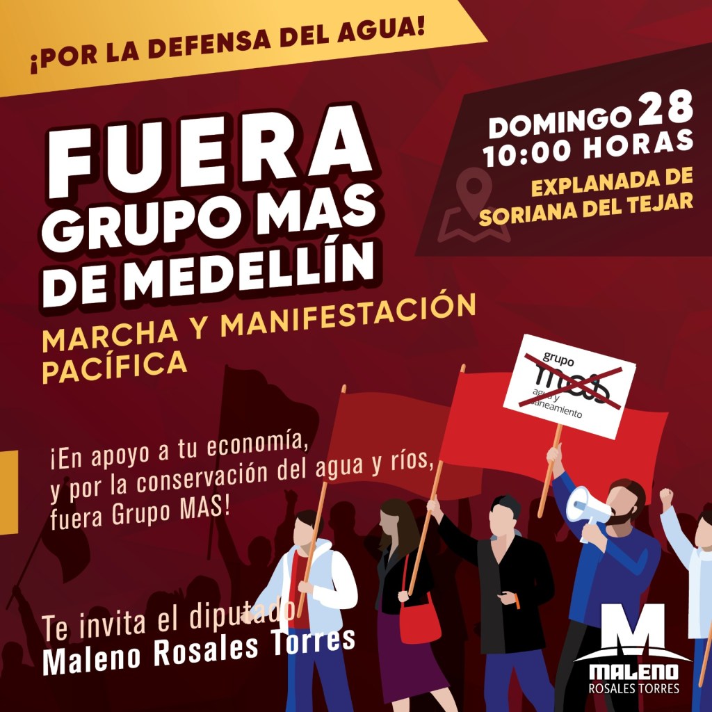 La invitación se extiende a los ciudadanos inconformes de los municipios de Veracruz y Medellín de Bravo, donde Grupo MAS tiene injerencia en la administración del agua; pero también se le abre las puertas a ciudadanos de Jamapa, Atoyac, Camarón de Tejeda, Soledad de Doblado, Carrillo Puerto, Boca del Río, Manlio Fabio Altamirano, Cuitláhuac y Cotaxtla.