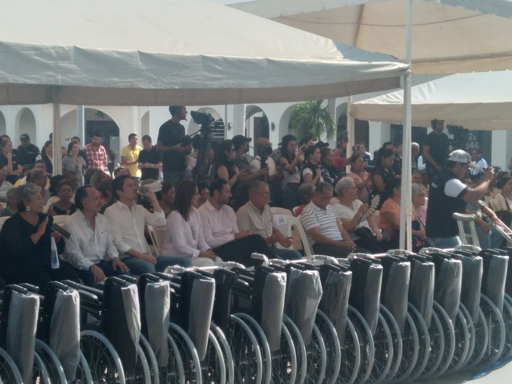 La entrega de aparatos funcionales se llevó a cabo en la plaza cívica Benito Juárez; el alcalde estuvo acompañado de regidores y directores municipales a quienes agradeció el compromiso con los ciudadanos.