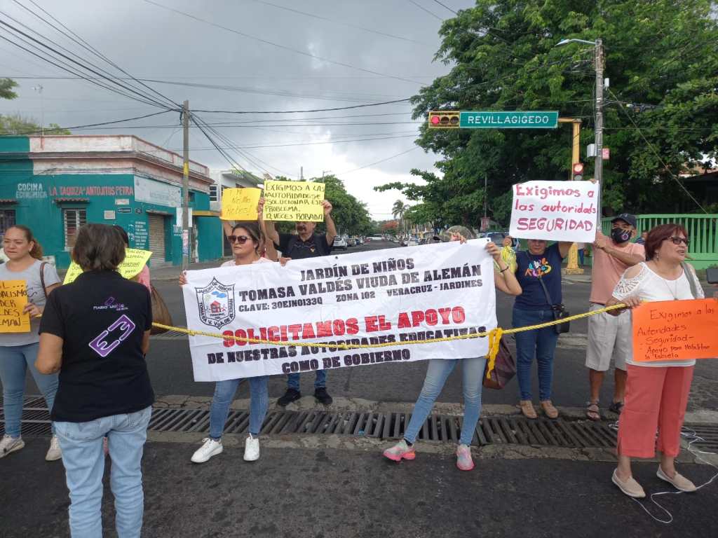 Veracruz, Ver.- Debido a que en 12 ocasiones ha sido robado el jardín de niños «Tomasa Valdez de Alemán», padres de familia bloquearon la intersección de la calle Cortés esquina Victoria para exigir mayor vigilancia policial.