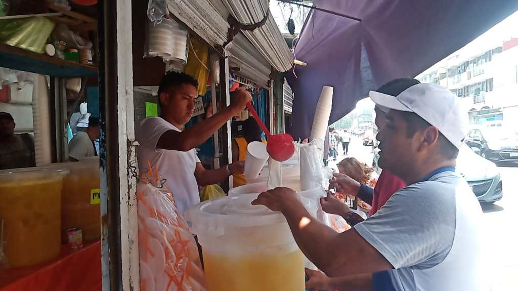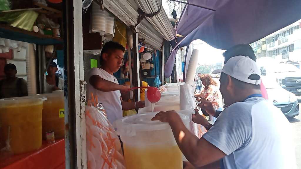 Y así en estos días donde las temperaturas han alcanzado los 45 grados de sensación térmica,los negocios de aguas frescas están haciendo su agosto.