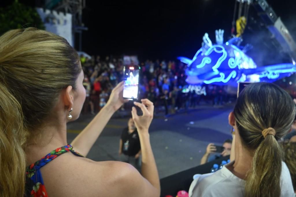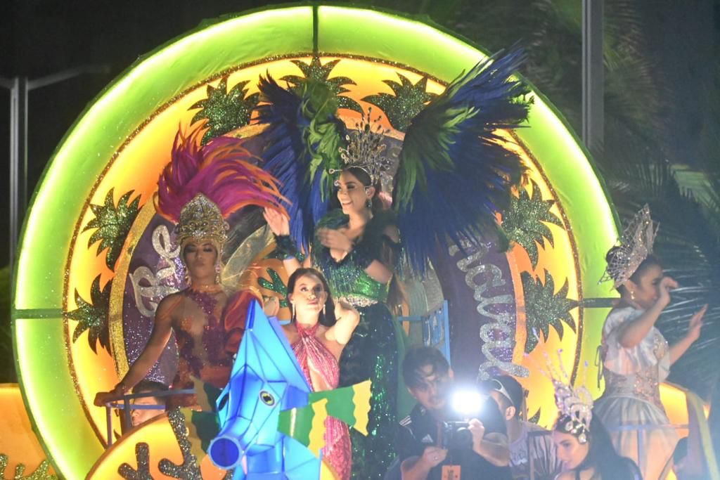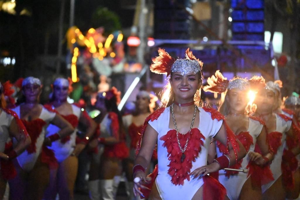 Los vistosos carros alegóricos gigantes y llenos de luces multicolores siguen sorprendiendo a todos y las comparsas, batucadas y bastoneras desfilan derrochando energía y alegría, contagiando a los presentes.