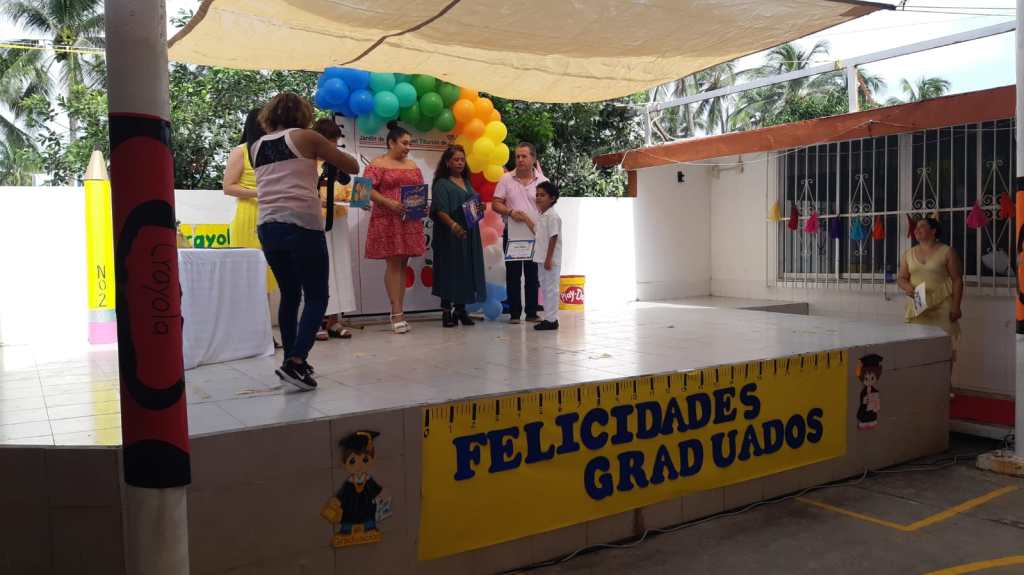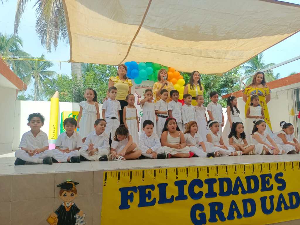 El jardín de niños «Isabel Tiburcio», ubicado en el fraccionamiento Costa de Oro del municipio Boca del Río, fue uno de los pocos que decidió realizar una graduación a los pequeños que aún tuvieron una formación híbrida.