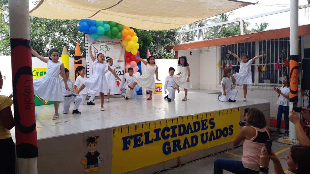 Los pequeños de 6 años de edad y que están a punto de ingresar a la educación primaria, cantaron una canción de despedida, bailaron el vals y posteriormente se realizó la ceremonia de entrega de diplomas, a cerca de 30 niños de los salones, tercero «A» y «B»