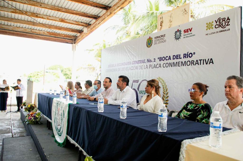 “Celebro junto con ustedes este aniversario que resume toda la pasión y determinación de tantas maestras y maestros que a lo largo de estos 50 años, han entregado lo mejor de sí para que hoy la escuela Secundaria General número dos de Boca del Río sea pieza fundamental para que nuestra ciudad sea reconocida como lo mejor de Veracruz”, mencionó el Alcalde.