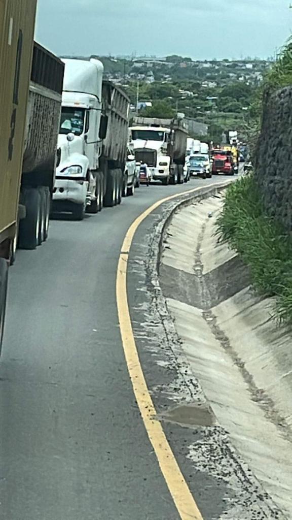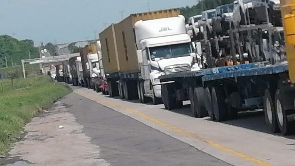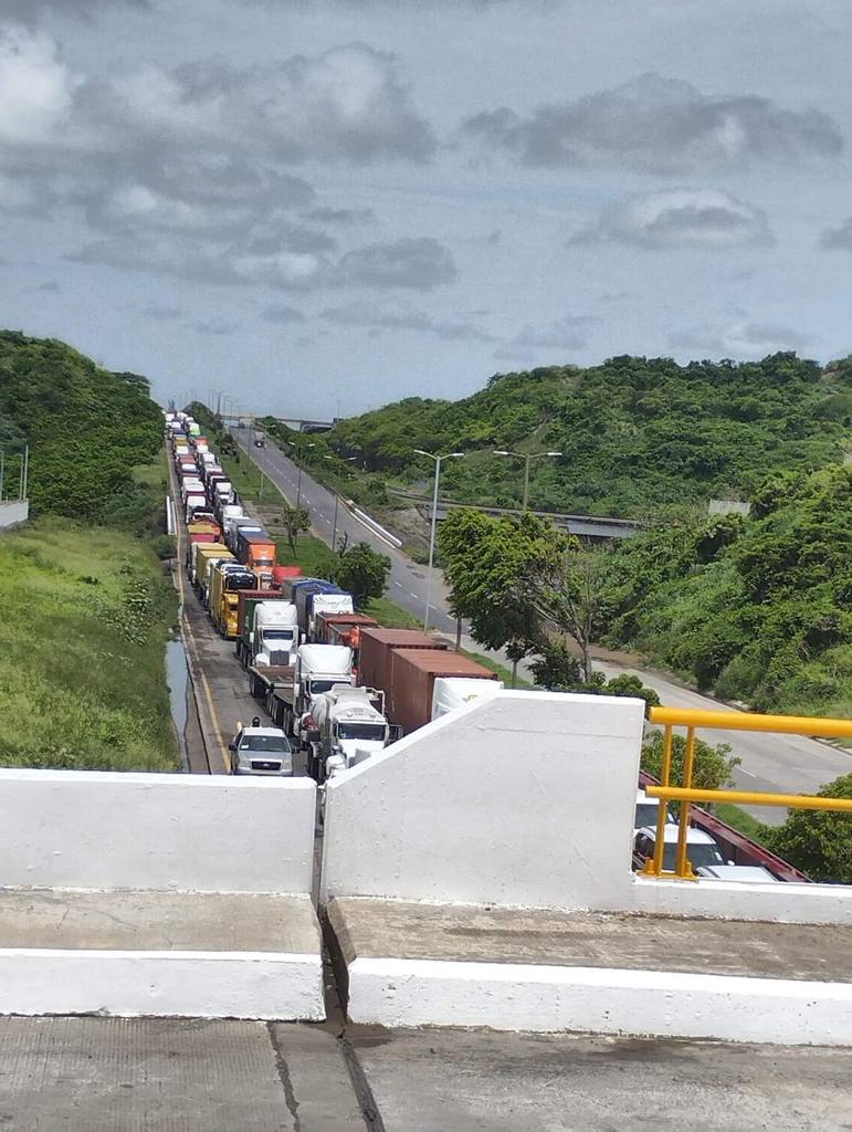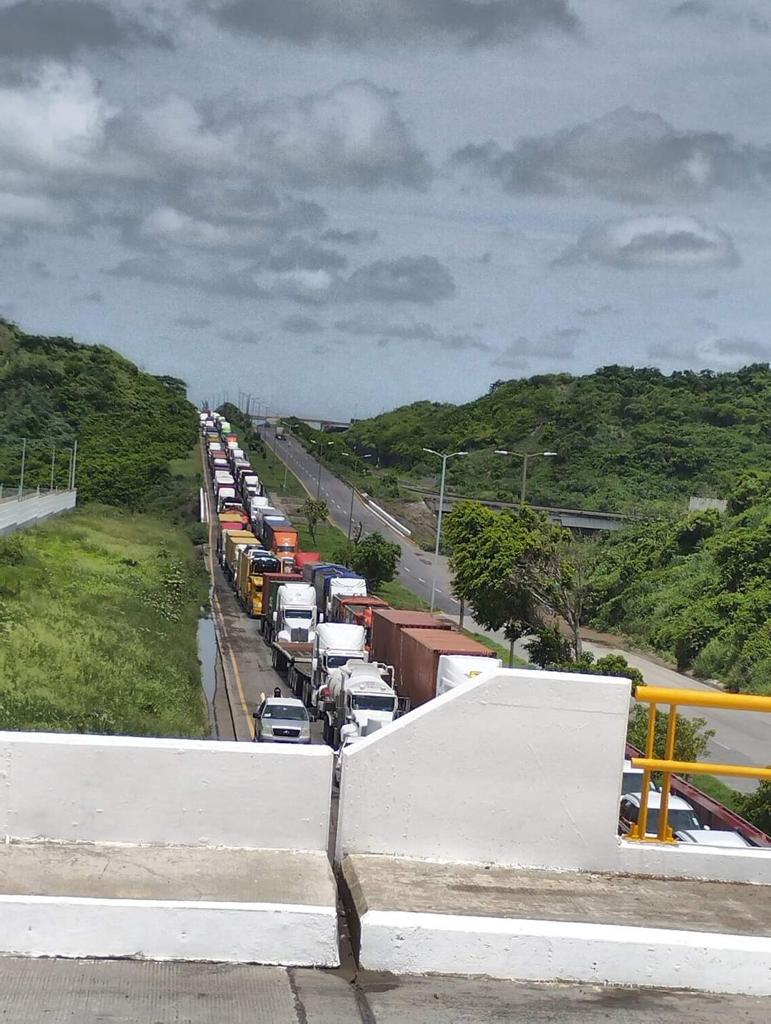 Este martes se observan largas filas de vehículos y camiones de carga sobre el kilómetro 13.5, lo que afecta la vialidad en esa zona y en la autopista Veracruz-Cardel.