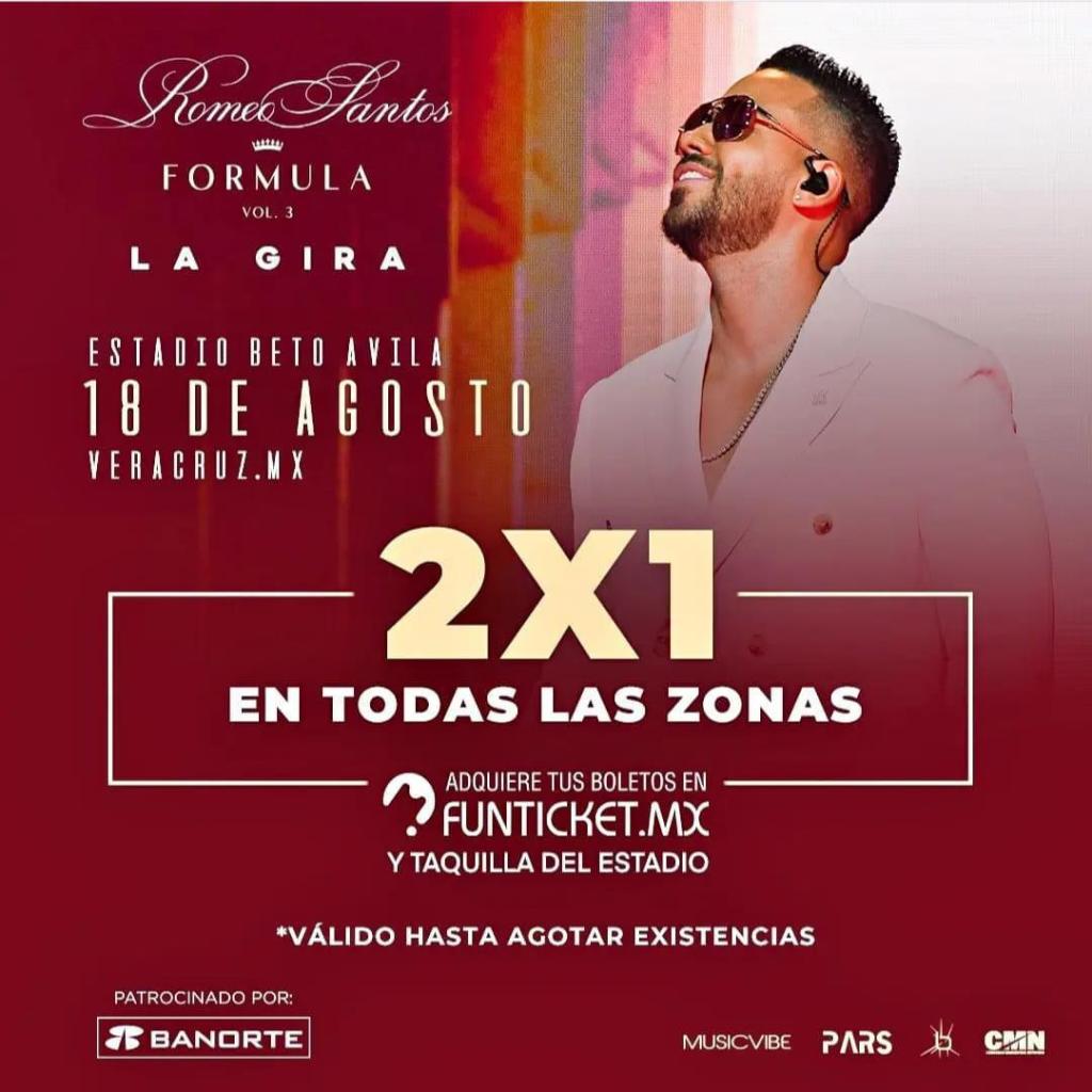 Déjate llevar por la sensualidad de su música y vive una noche inolvidable en compañía de Romeo Santos ¡En Veracruz! 18 de agosto estadio de béisbol “Beto Ávila”.