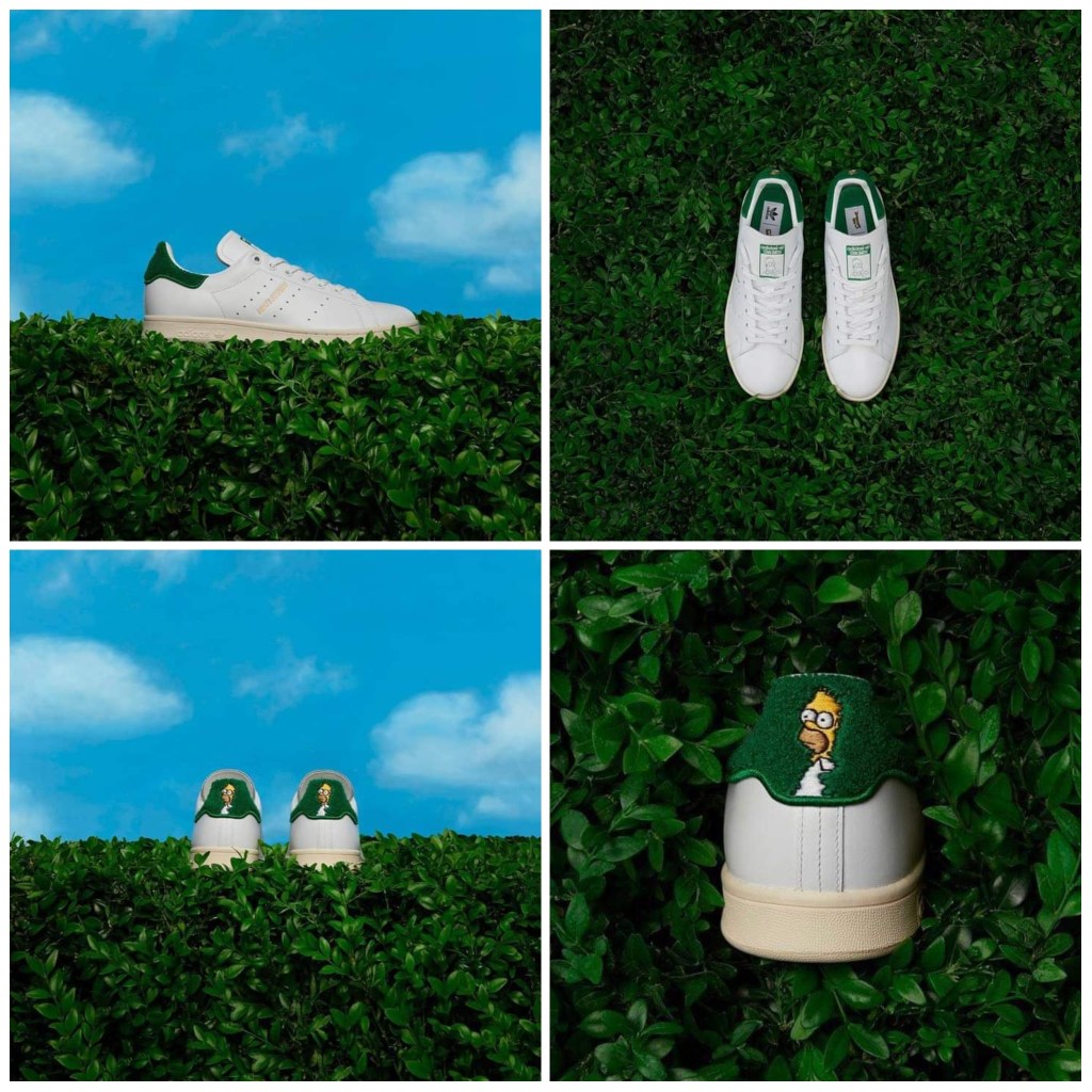 Los sneakers tendrán un tratamiento avejentado para la media suela, algunas modificaciones como el cambio del hombre de Stan Smith a Homer Simpson en letras doradas en los laterales.