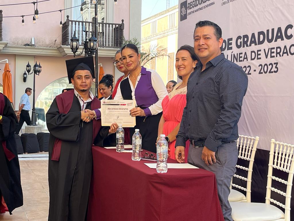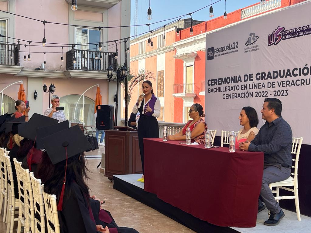 Veracruz, Ver.- El pasado 18 de agosto se llevó a cabo la graduación de la segunda generación del 2023, del Sistema Emergente Educativo Bachillerato en línea de Veracruz; estos alumnos a través del programa Líderes Solidarios que encabeza la regidora, Lissethe Martínez Echeverría, obtuvieron un subsidio del 100 por ciento para sus estudios.