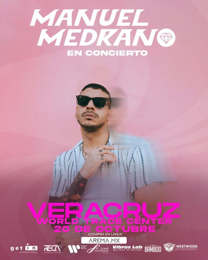 Manuel Medrano cantará grandes éxitos como “Afuera del Planeta”, “bajo el agua”, y “Quédate”, en las instalaciones del World Trade Center en Boca del Río, conurbado con Veracruz, en punto de las 21:00 horas.
