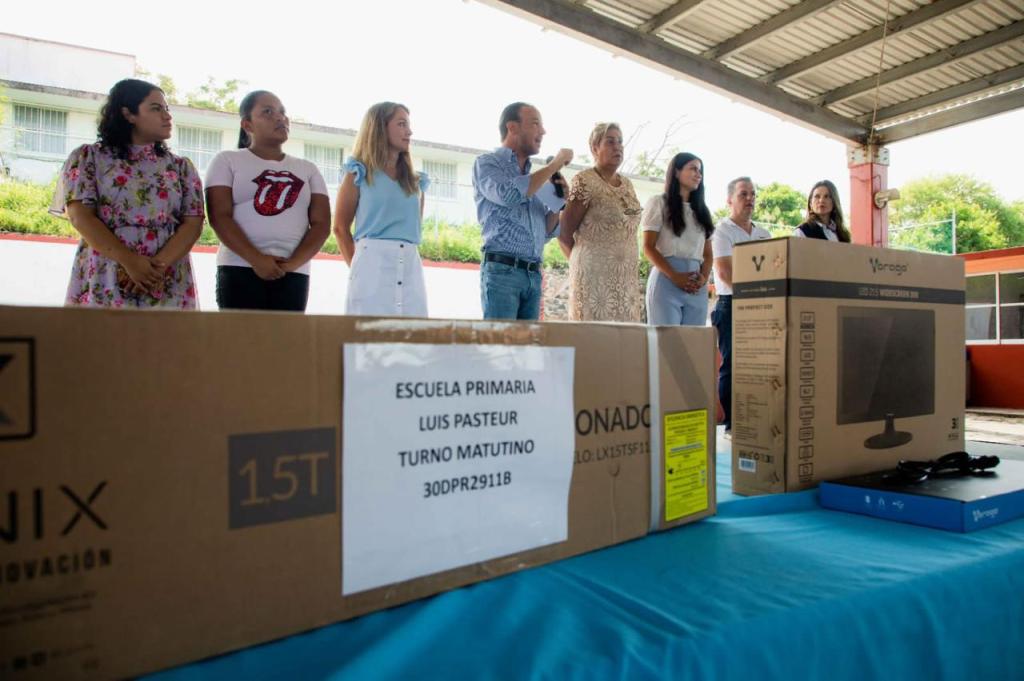 La primera entrega del equipo se realizó en la Escuela Primaria Luis Pasteur, la cual en días pasados fue afectada por las intensas lluvias, movilizando inmediatamente al personal del Ayuntamiento de Boca del Río para su limpieza y rehabilitación.
