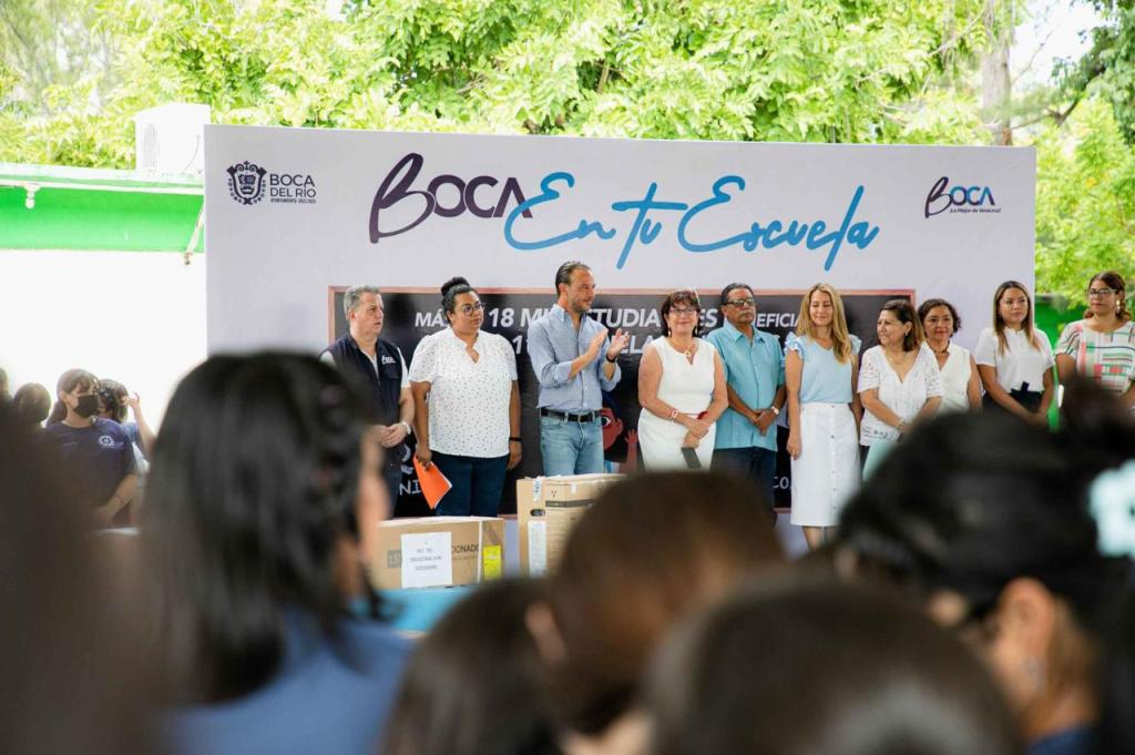 El Alcalde de Boca del Río, Juan Manuel Unánue Abascal, realizó una gira de trabajo como parte del programa “Boca en tu Escuela”, entregando personalmente el equipamiento a las comunidades estudiantiles beneficiadas con estos apoyos.