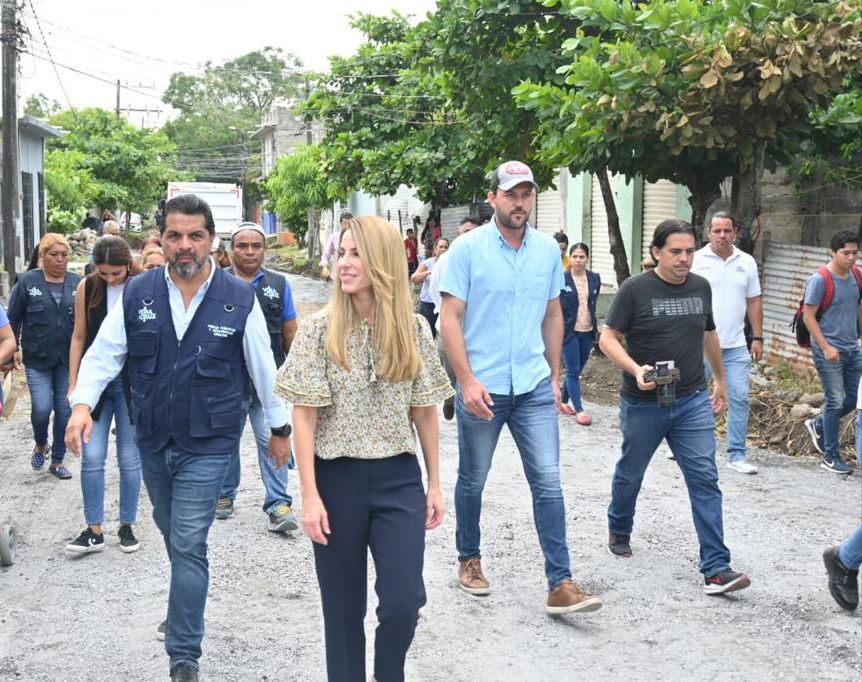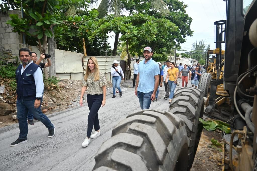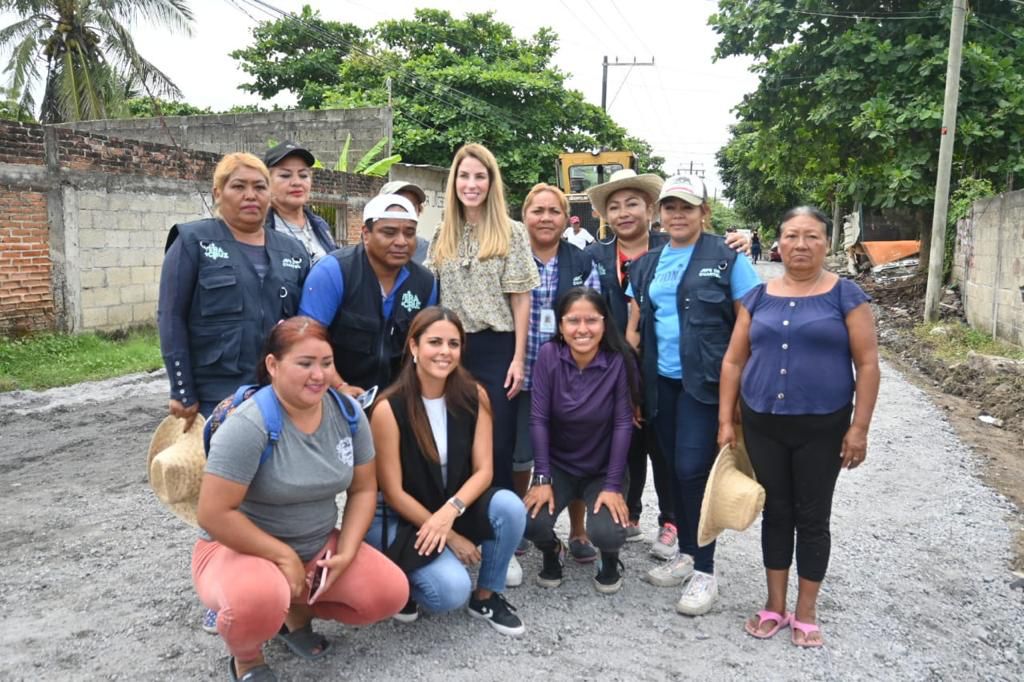 *Veracruz, Ver., 07 de septiembre de 2023.-* La alcaldesa Paty Lobeira de Yunes supervisó los trabajos de nivelación con subproducto de acero, que dona Tamsa al Ayuntamiento, en las calles de la colonia Predio III del municipio porteño.