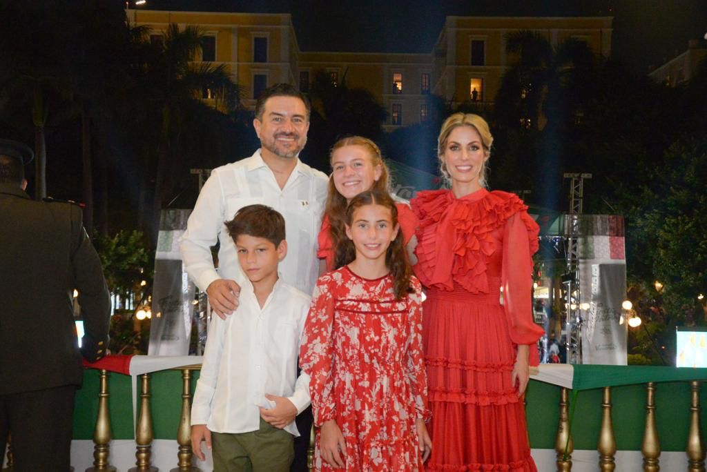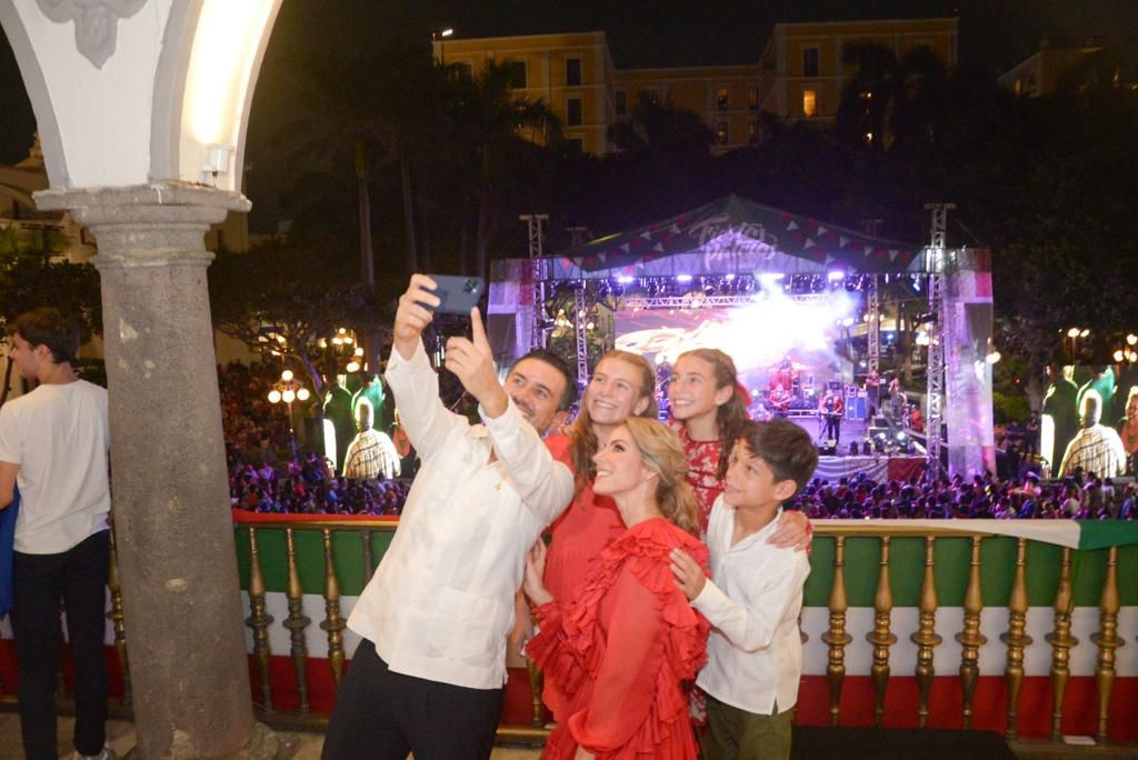 *Veracruz, Ver., 15 de septiembre de 2023.-* La alcaldesa Paty Lobeira de Yunes, acompañada por autoridades navales y militares, así de su esposo Miguel Ángel Yunes Márquez y de sus hijos, dio el tradicional Grito de Independencia desde el balcón principal de Palacio Municipal, ante miles de veracruzanos que se congregaron en el Zócalo de la Ciudad para acompañarla en esta tradicional e histórica celebración por el Día de la Independencia en México.