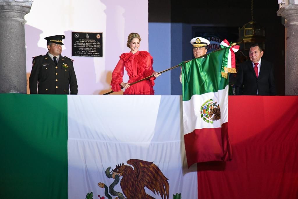 La ceremonia protocolaria dio inicio al recibir la Alcaldesa, en Sala de Cabildo, la Bandera Nacional por parte de la escolta naval y posteriormente salir al balcón principal.