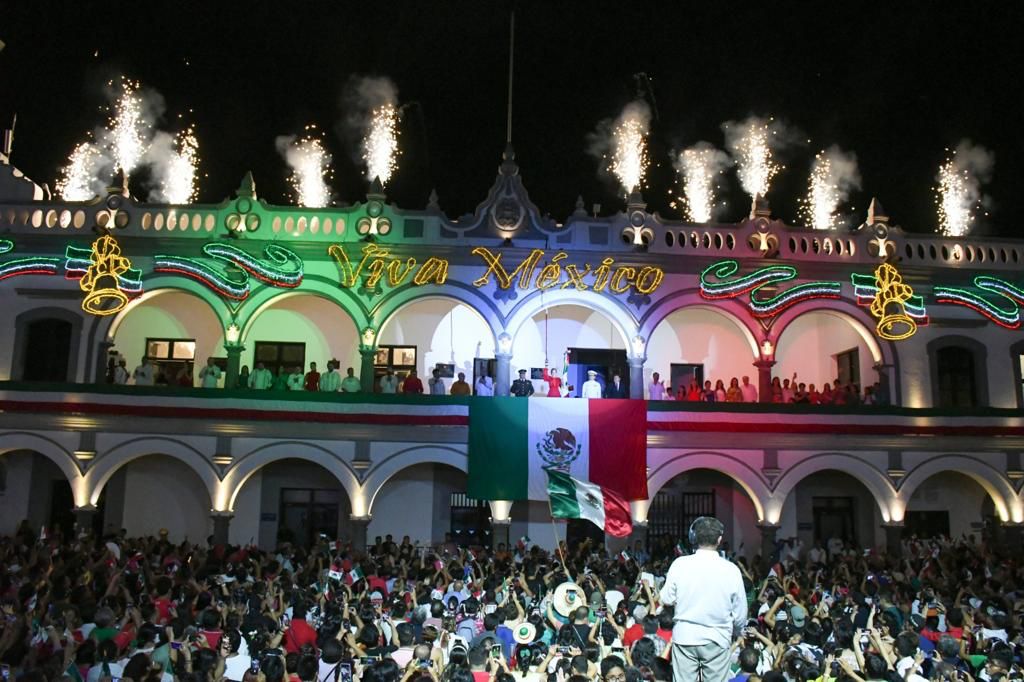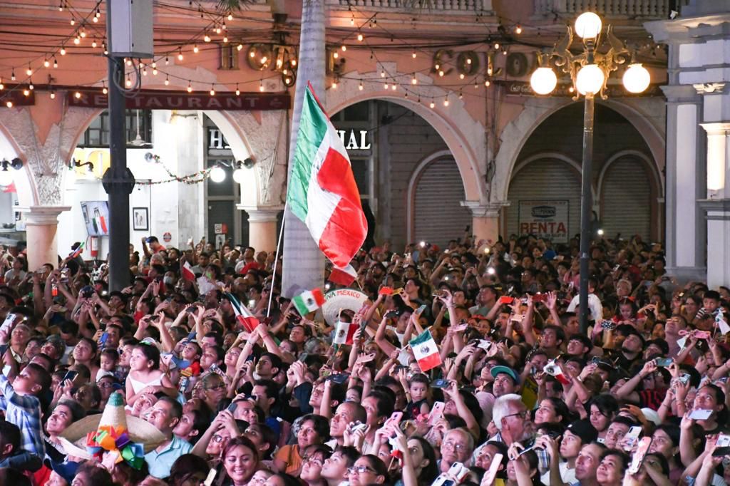 Ahí, la alcaldesa Paty Lobeira de Yunes dio las tradicionales campanadas y ante los miles de veracruzanos reunidos en la Zócalo de la Ciudad, pronunció la arenga a los héroes de la Independencia, seguido del tradicional del Grito de Independencia exclamando: