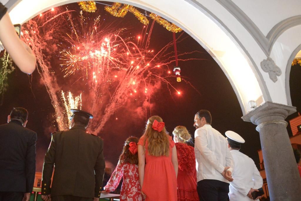 Una vez entregado el Lábaro Patrio, la Alcaldesa salió nuevamente al Balcón Central de Palacio Municipal para contemplar el espectáculo de pirotecnia.