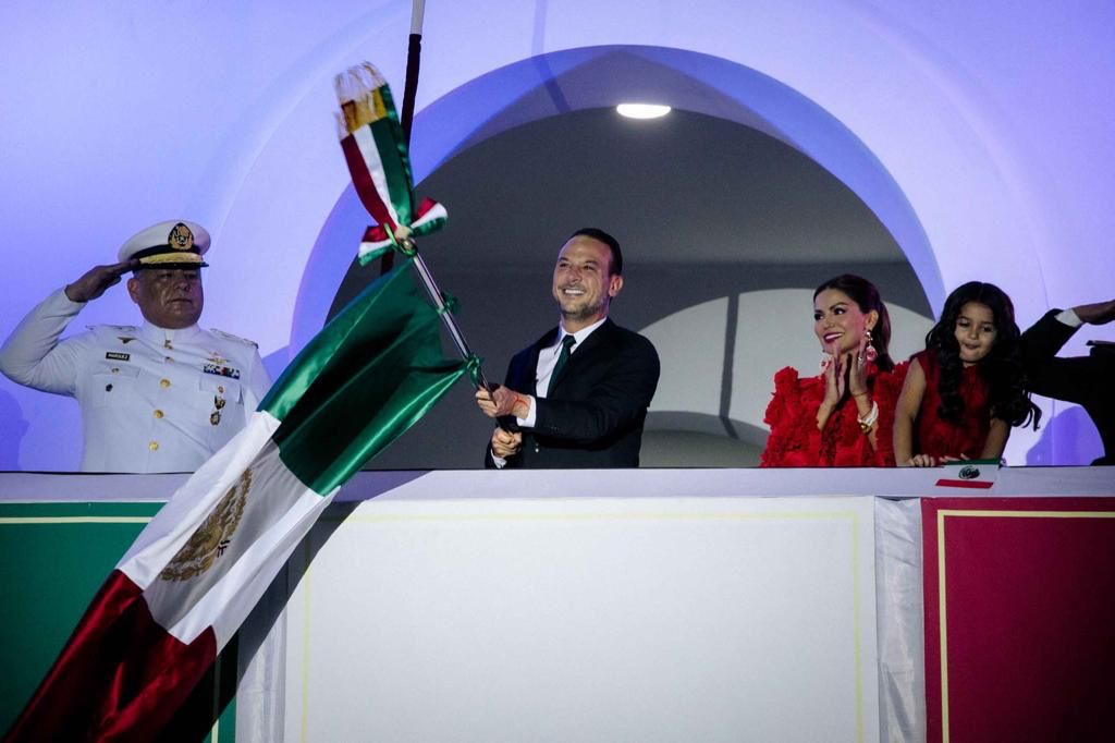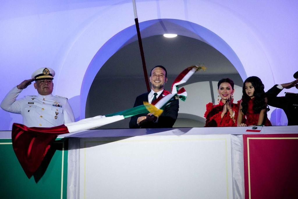 Diez minutos antes de las 11 de la noche, el Presidente Municipal, la Presidenta del DIF local, Melina Rivera de Unánue y su hija Aitana Unánue Rivera, se trasladaron por los pasillos del palacio para dirigirse al balcón principal y dar inicio con el acto conmemorativo.
