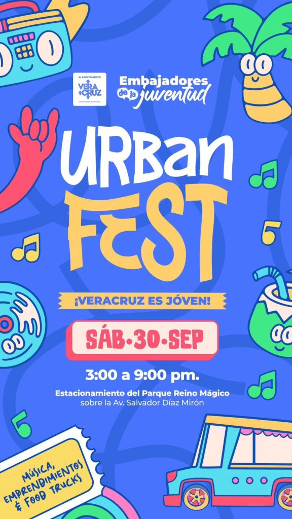 Veracruz, Ver.- Este sábado 30 de septiembre en el estacionamiento del parque Reino Mágico se lleva a cabo el «Urban Fest», evento de talentos veracruzanos, emprendimiento y Food Trucks, que donará apoyos a los niños con cáncer.