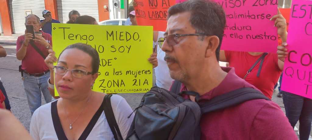 Karina Martínez, secretaria de Conflictos de la de DII-64 de la sección 32 del SNTE, expuso que este servidor público los lleva amedrentando y fastidiando desde hace 10 años, al tiempo que se jacta, no puede ser removido de su cargo debido a las amistades con las que cuenta.