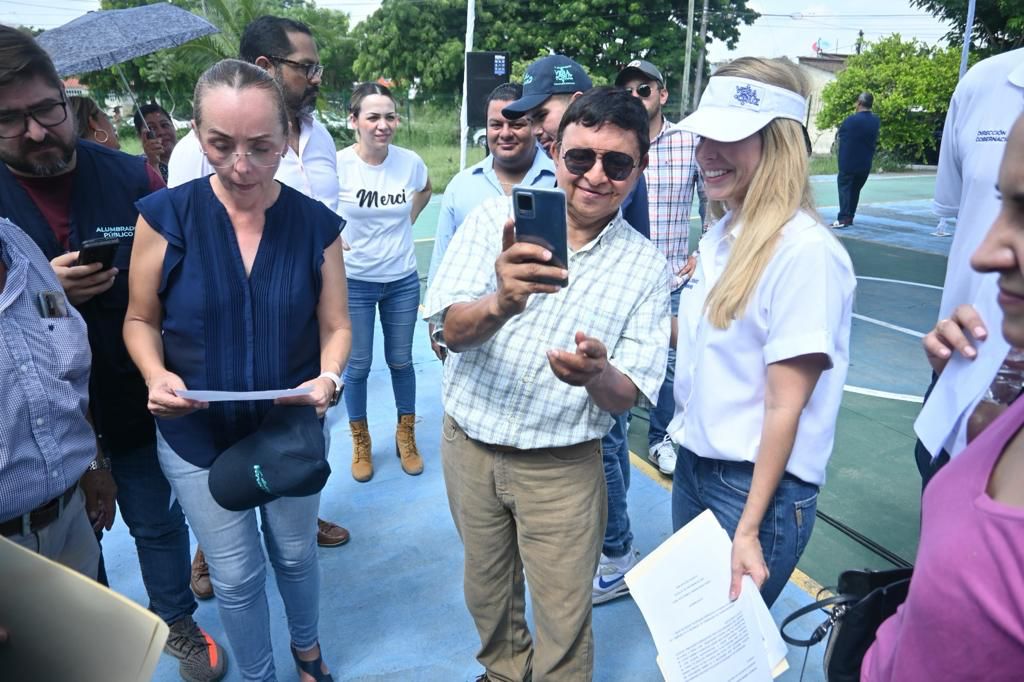 *Veracruz, Ver., 12 de octubre de 2023.-* La alcaldesa Paty Lobeira de Yunes realizó la supervisión de la obra de rehabilitación integral en la Cancha de Usos Múltiples del fraccionamiento Geovillas del Puerto, beneficiando a más de 4 mil habitantes de esta zona.