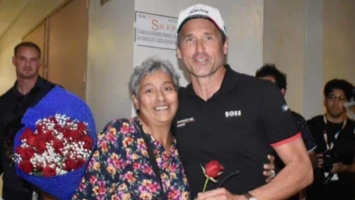 Aunque el actor contaba con vallas de seguridad, la mujer y su familia lograron sortear a los fanáticos y abrazar al actor, quien le devolvió el amor a la veracruzana con una amable sonrisa.