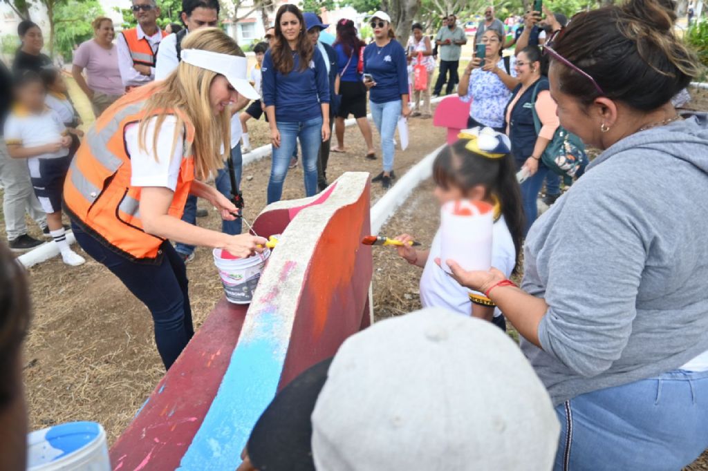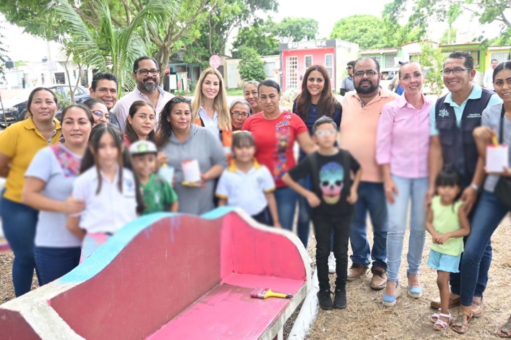 “Este programa de Adopta tu Parque se llama así porque lo que hacemos es que venimos y lo arreglamos junto con los vecinos”, destacó la Alcaldesa, quien este día supervisó los trabajos de chapeo, limpieza y pintura que se están haciendo en el Parque Papaloapan del fraccionamiento Hacienda Sotavento