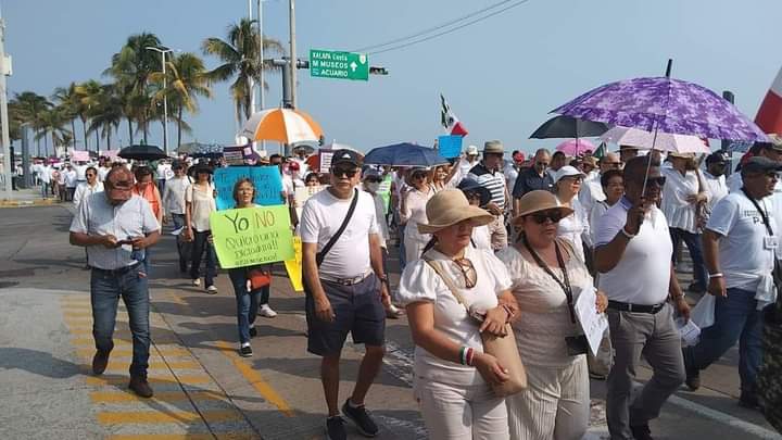 La mañana de este domingo, cientos de personas marchan en la zona conurbada Veracruz-Boca del Río en defensa del Poder Judicial de la Federación.