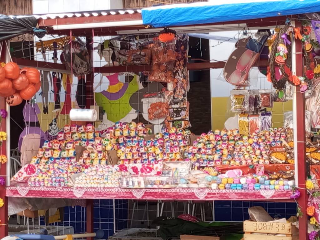 Manteles estampados con catrinas calaveras de azúcar entre otros artículos son las más consumidas por los porteños y ya están a la venta en mercados y calles del puerto de Veracruz.