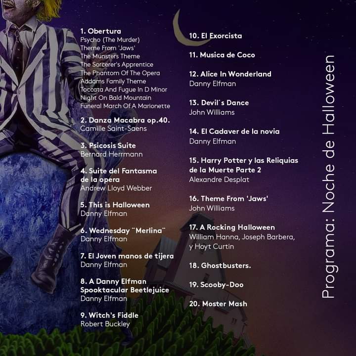 🎶🎥 Desde las fauces de Tiburón 🦈 hasta la psicosis de Psycho 🔪, el terror de El Exorcista 😱, los fantasmas de GhostBusters 👻, la magia de Harry Potter ⚡ y la misteriosa Merlina 🧙♀️. Un recorrido musical que embrujará a toda la familia. ¡No faltes! 👨👩👧👦💀🎻🕷