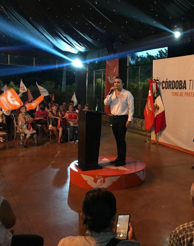 Córdoba, Ver., 26/10/2023.- “Córdoba tiene quien lo defienda”, afirmó Sergio Gil Rullan coordinador estatal de Movimiento Ciudadano, al tomarle protesta a Erick Alberto Gasca Morales como coordinador de la Comisión Operativa Municipal, ante decenas de simpatizantes la tarde de este jueves.