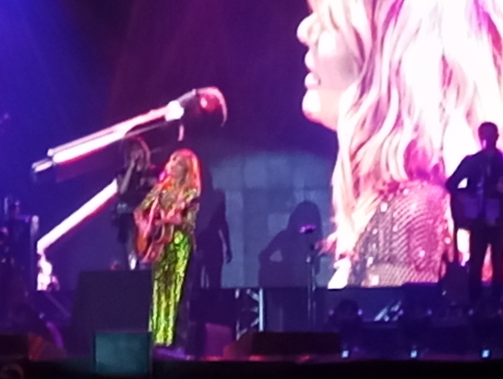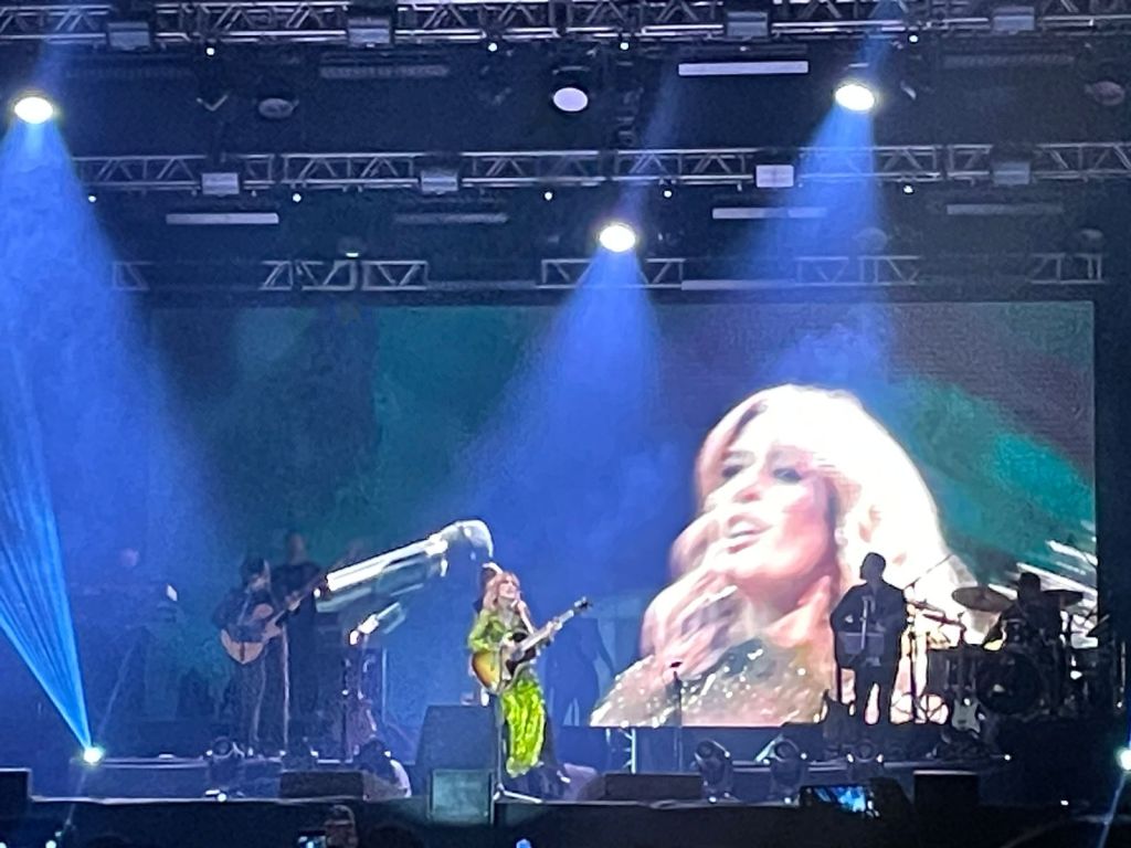 Las luces del recinto se apagaron e hizo su aparición Kany García que iba ataviada en un vestido verde limón brilloso y una gran sonrisa dió paso a su primera canción con su potente voz .