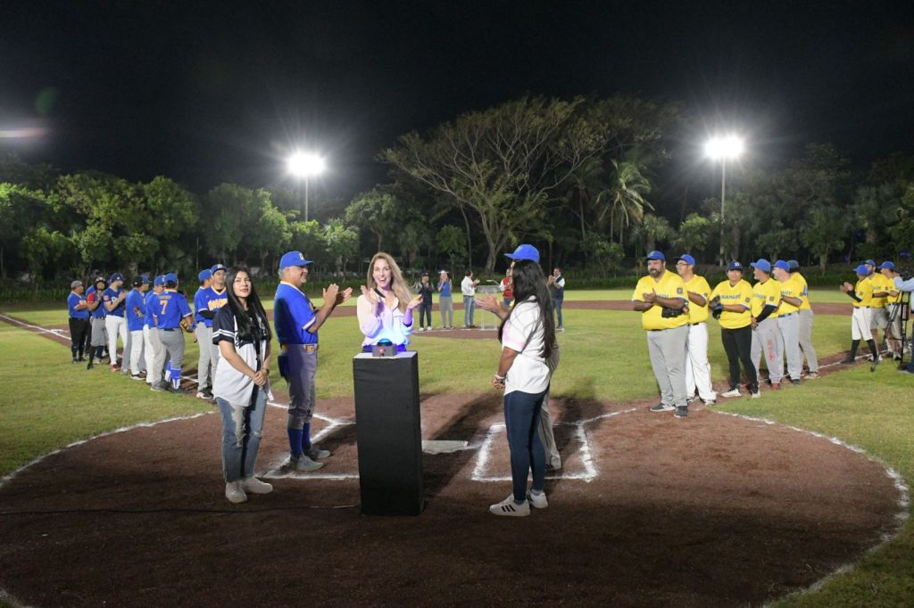 _-Celebra la reapertura con un partido amistoso de sóftbol, haciendo el lanzamiento oficial de la primera pelota_