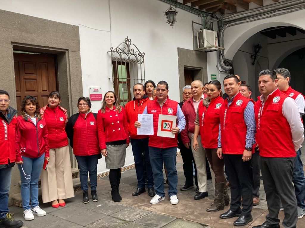 Acompañado por integrantes del Comité Estatal, el dirigente del Partido Revolucionario Institucional (PRI), acudió a las oficinas del Organismo Público Electoral para interponer una denuncia contra el gobernador del Estado.